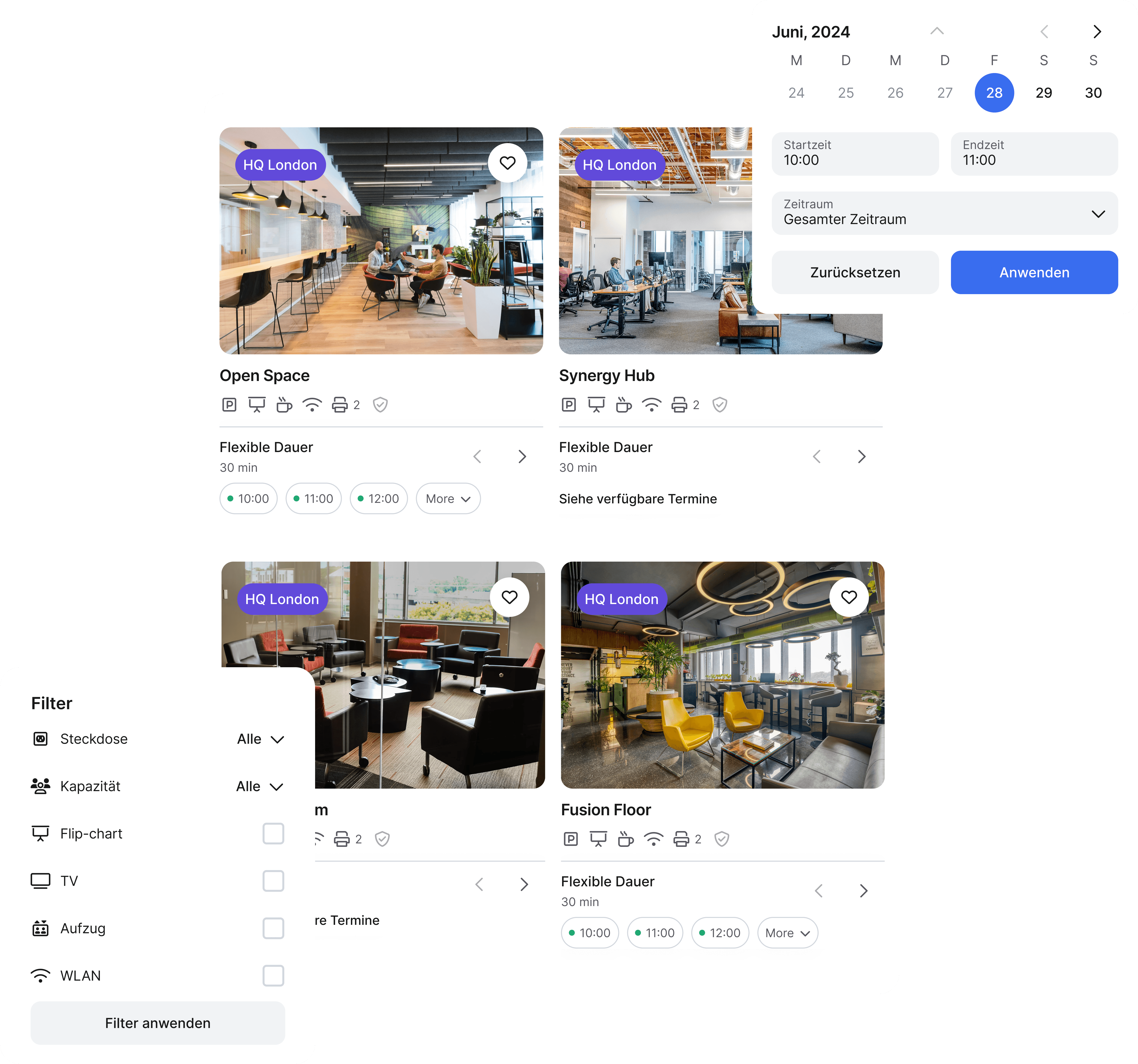 Statt verschiedener Systeme für unterschiedliche Standorte oder Abteilungen verwendest du eine einzige, zentrale Plattform. Alle Buchungen laufen über dasselbe System, wodurch Doppelbuchungen technisch unmöglich werden.
