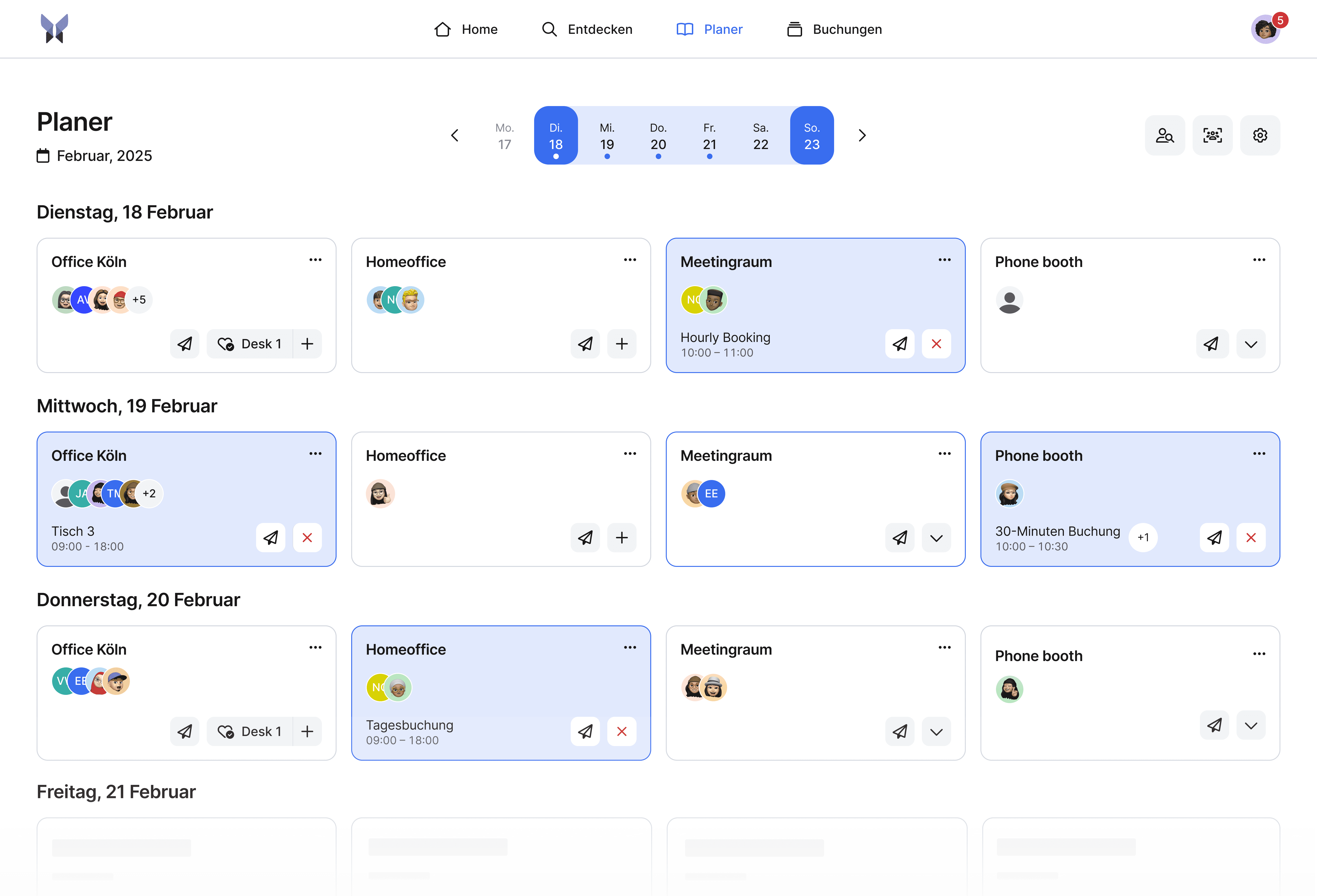 Smart Wochenplaner: Ein-Klick-Buchungen für Arbeitsplätze mit Kollegen-Übersicht für bessere Koordination