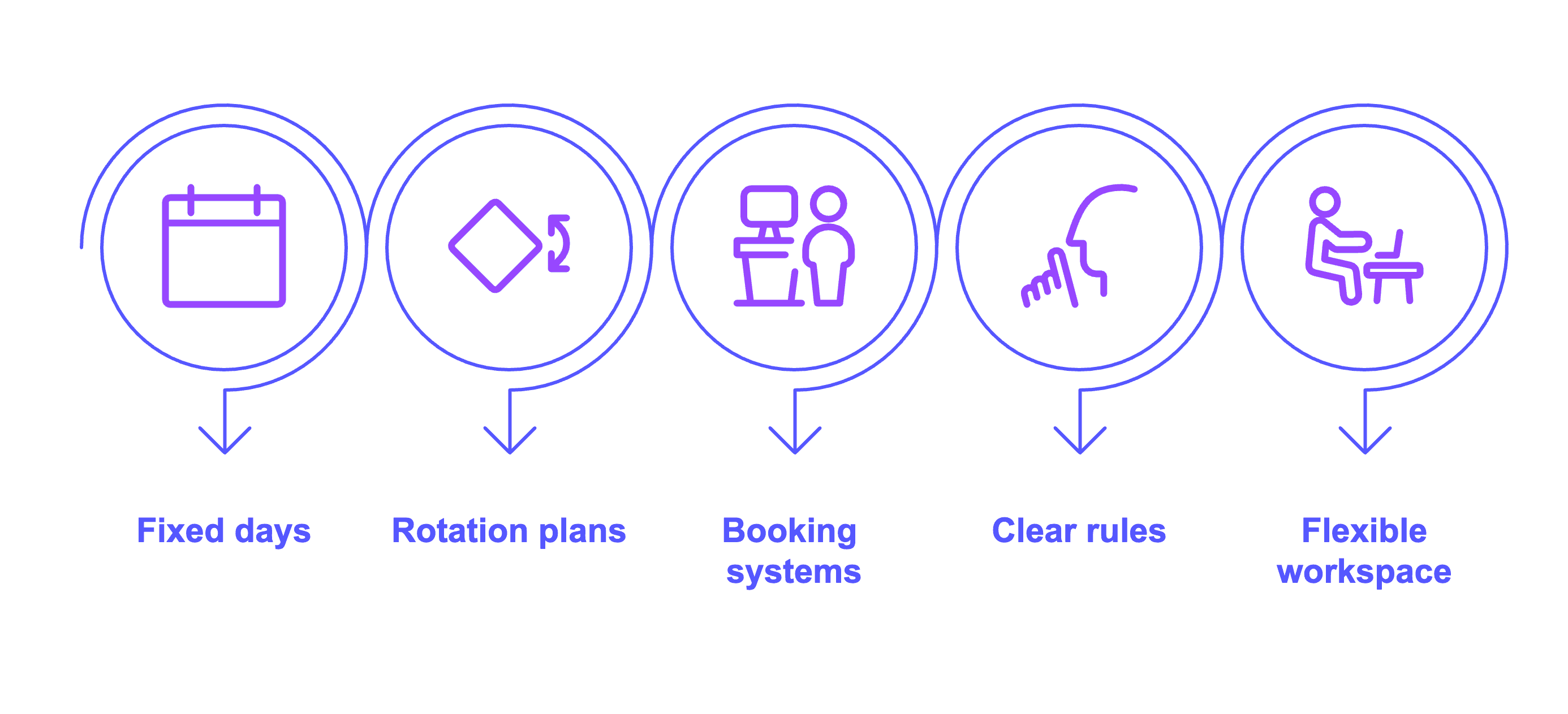 This creates a balanced harmony between working from home and office presence, ensuring that companies use their spaces optimally without chaos or conflicts arising.