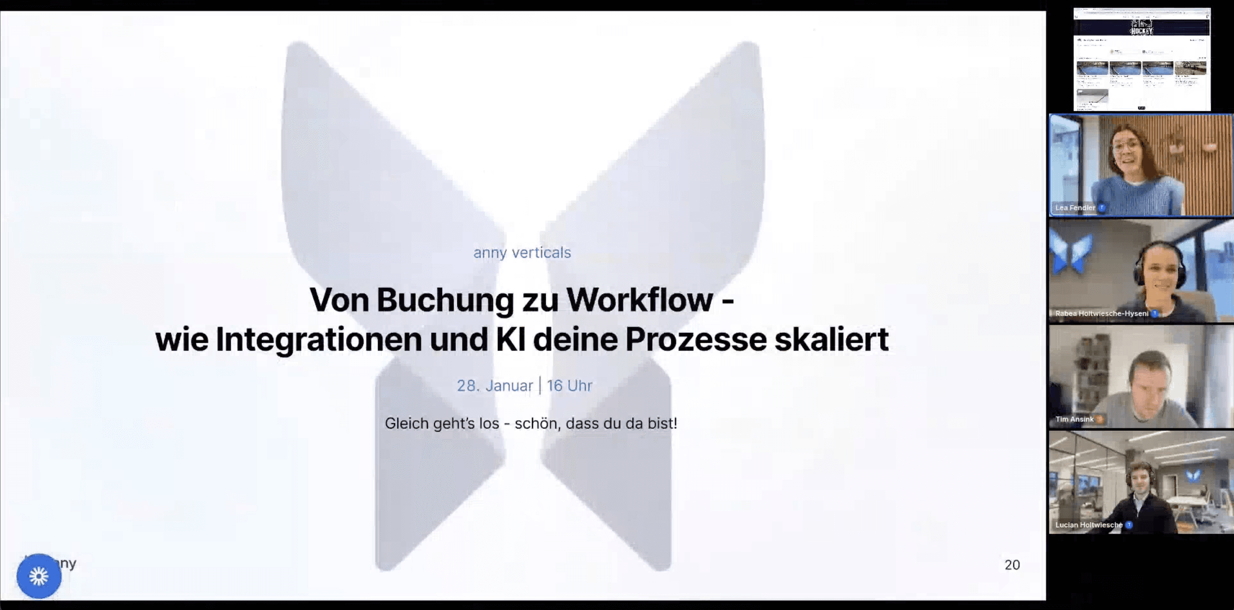 In diesem Deep-Dive-Webinar zeigen wir dir, wie du mit Integrationen, Automationen und AI aus deinem Buchungssystem echte, skalierbare Workflows machst. Statt manueller Prozesse und Insellösungen lernst du, wie anny zum zentralen Ort für dein Business wird - von der Buchung bis zur datengetriebenen Entscheidung.