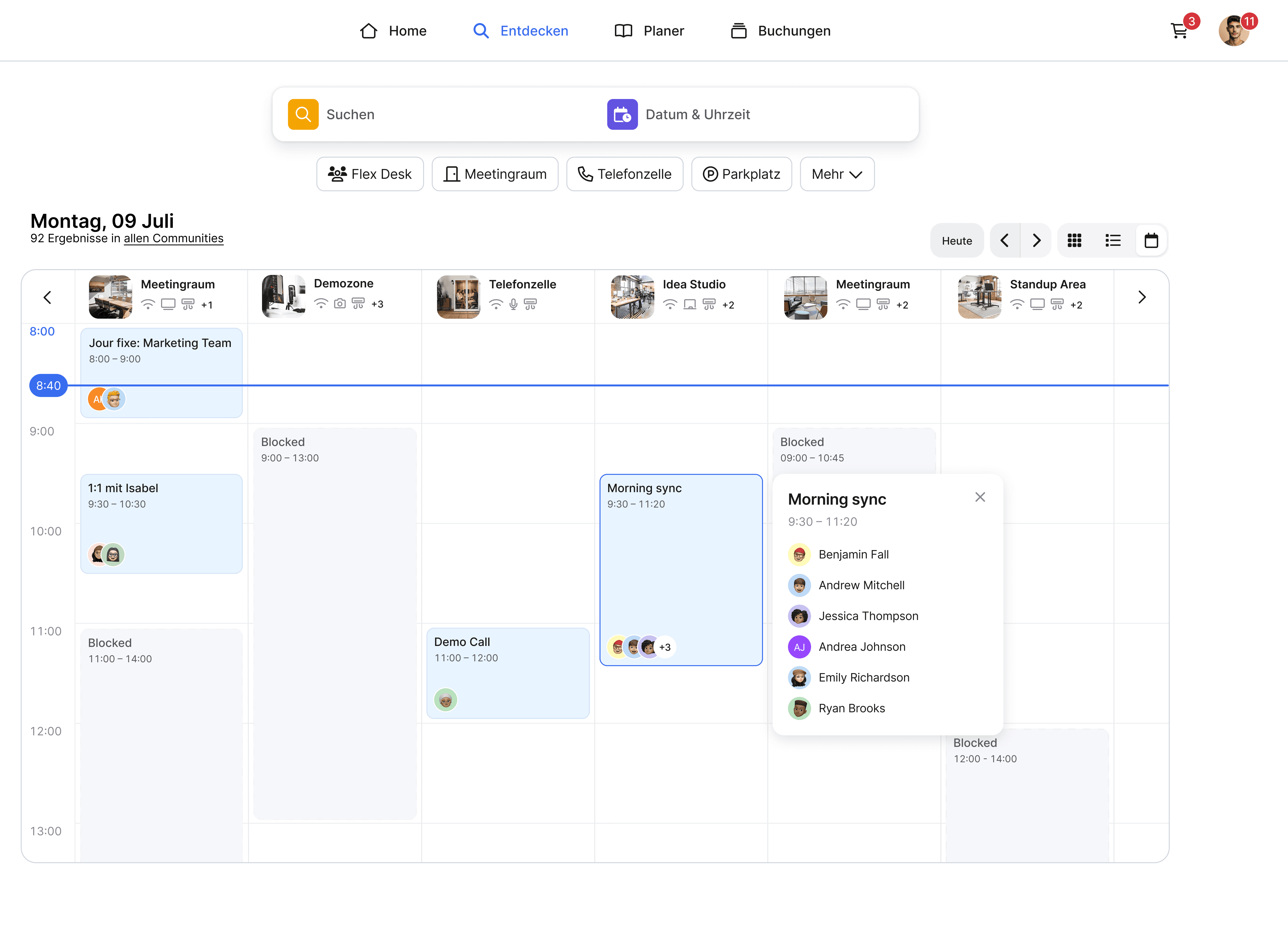 Plane Buchungen direkt im Kalender und sieh auf einen Blick, wann eine Ressource belegt ist.